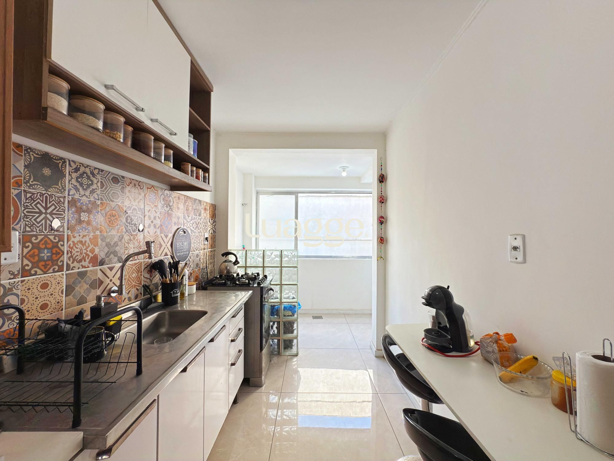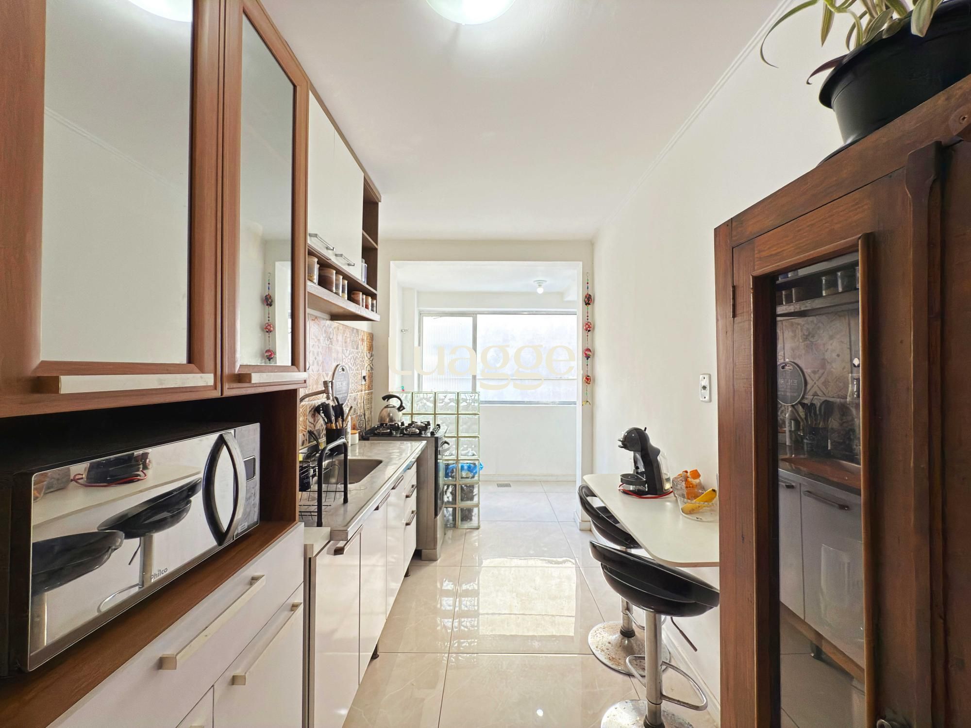 Apartamento semimobiliado com 99 m² de área privativa com 3 dormitórios sendo 1 suíte, banheiro social com ventilação natural, living amplo para 2 ambientes, cozinha montada com área de serviço individual, dependência de empregada. Não possui vaga de garagem.