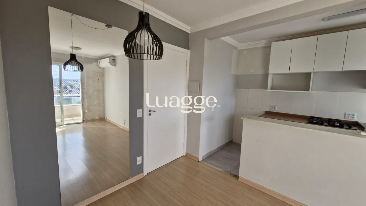 Apartamento de 2 dormitórios sendo 1 suíte, sala cozinha, banheiro social, ar condicionado, armário embutido na cozinha, cooktop, área de serviço, bem arejado e iluminado, 1 box fixo e vista panorâmica.