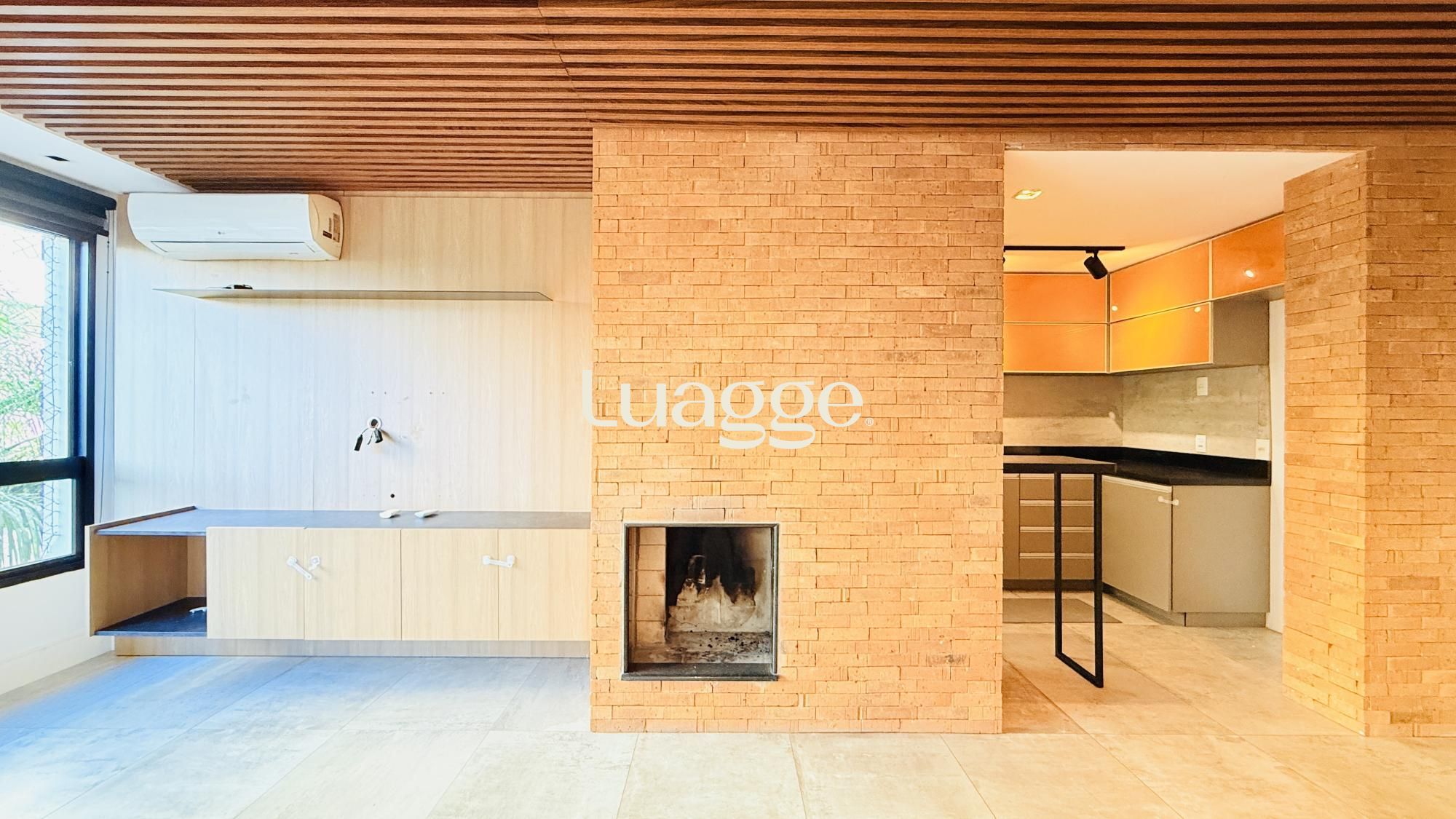 No interior do imóvel, você encontrará gás individual, lareira, banheiro social, cozinha americana, pet friendly, armário embutido, hidrômetro individual, churrasqueira, ar condicionado, sala de estar, móveis planejados, coleta seletiva de lixo, janela grande, lavanderia e luminárias.