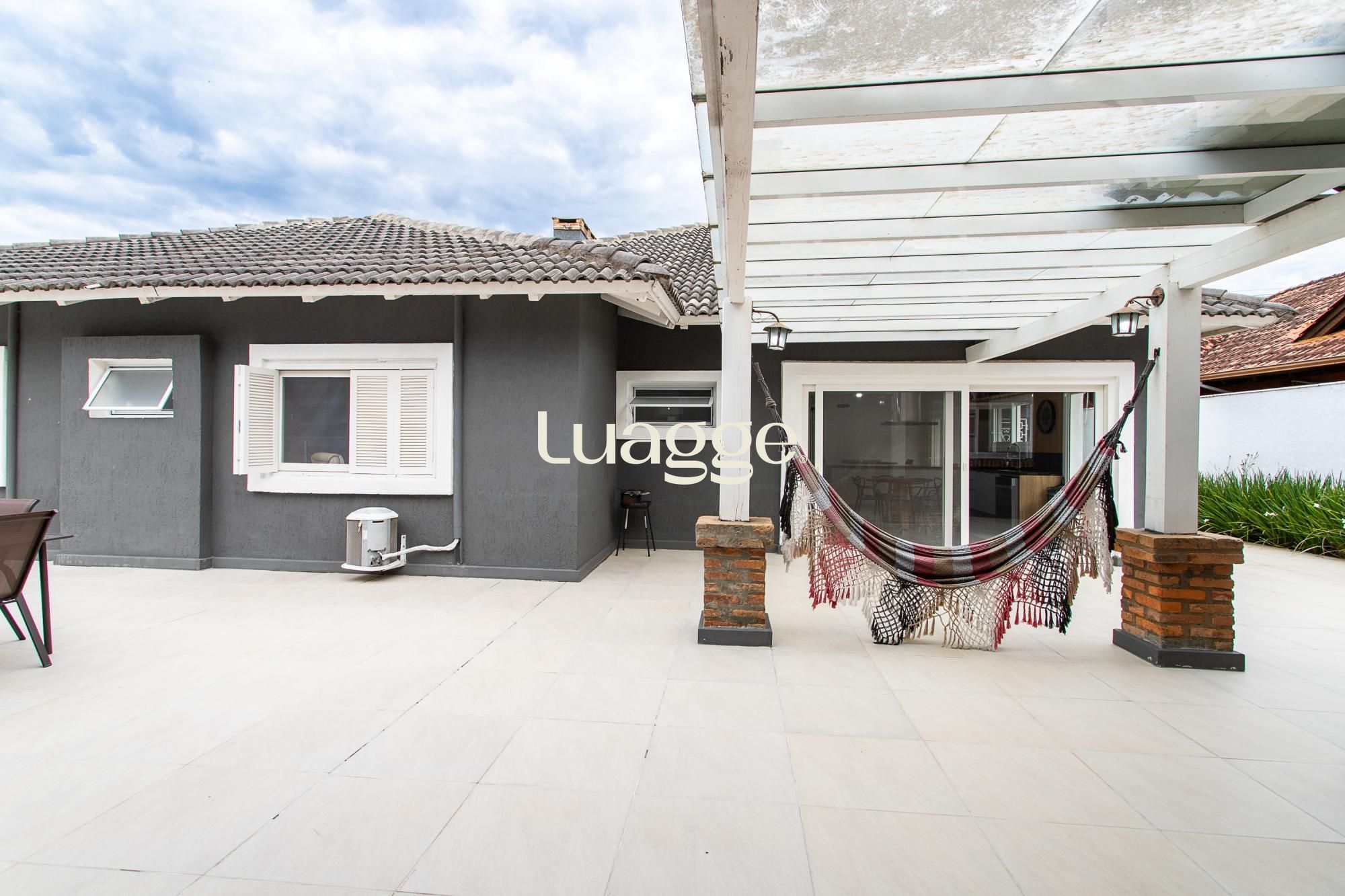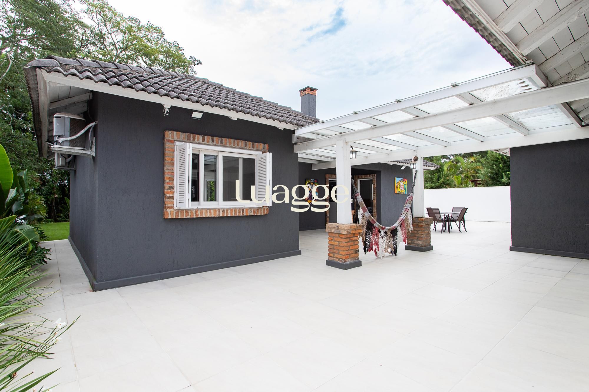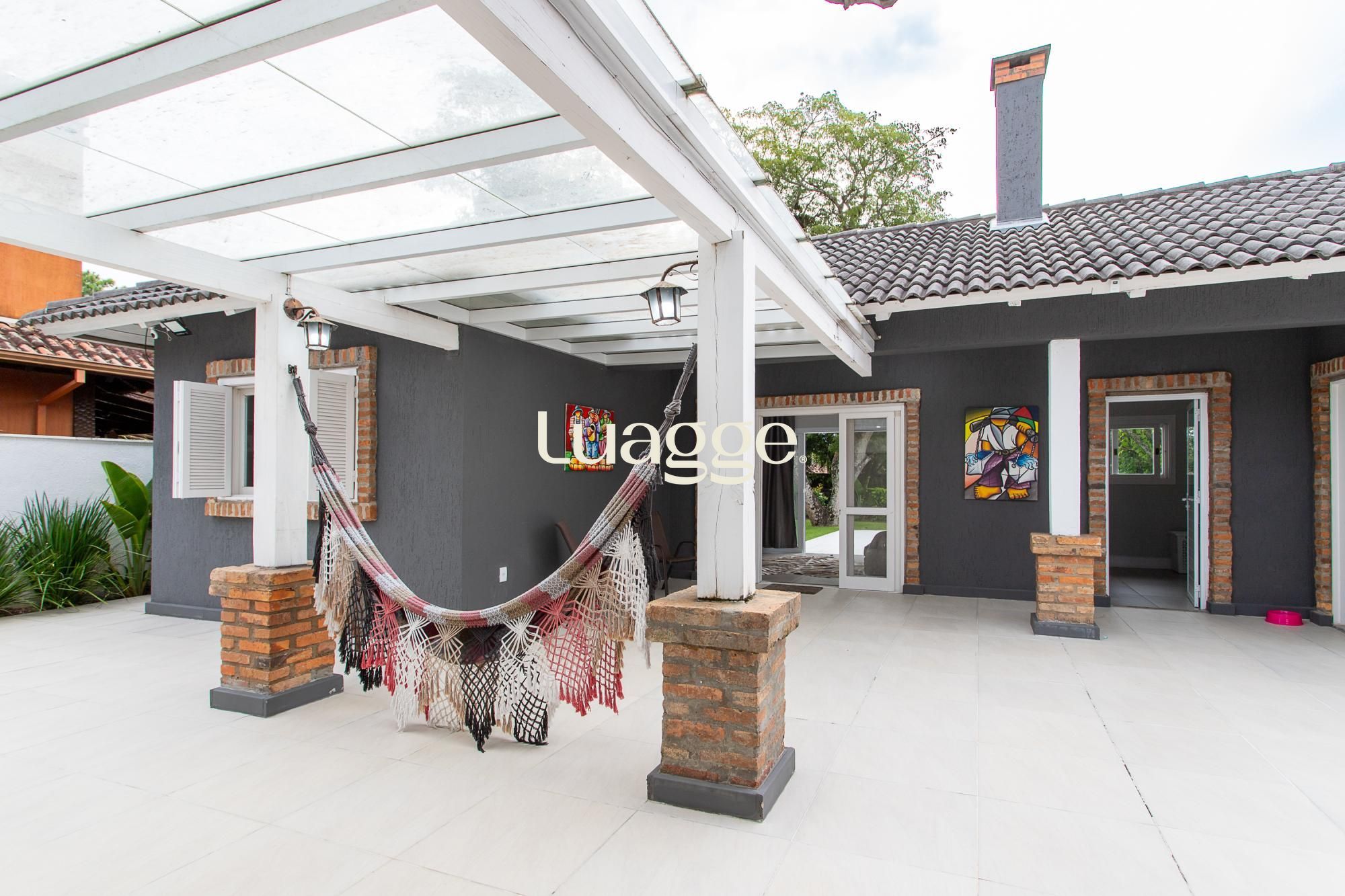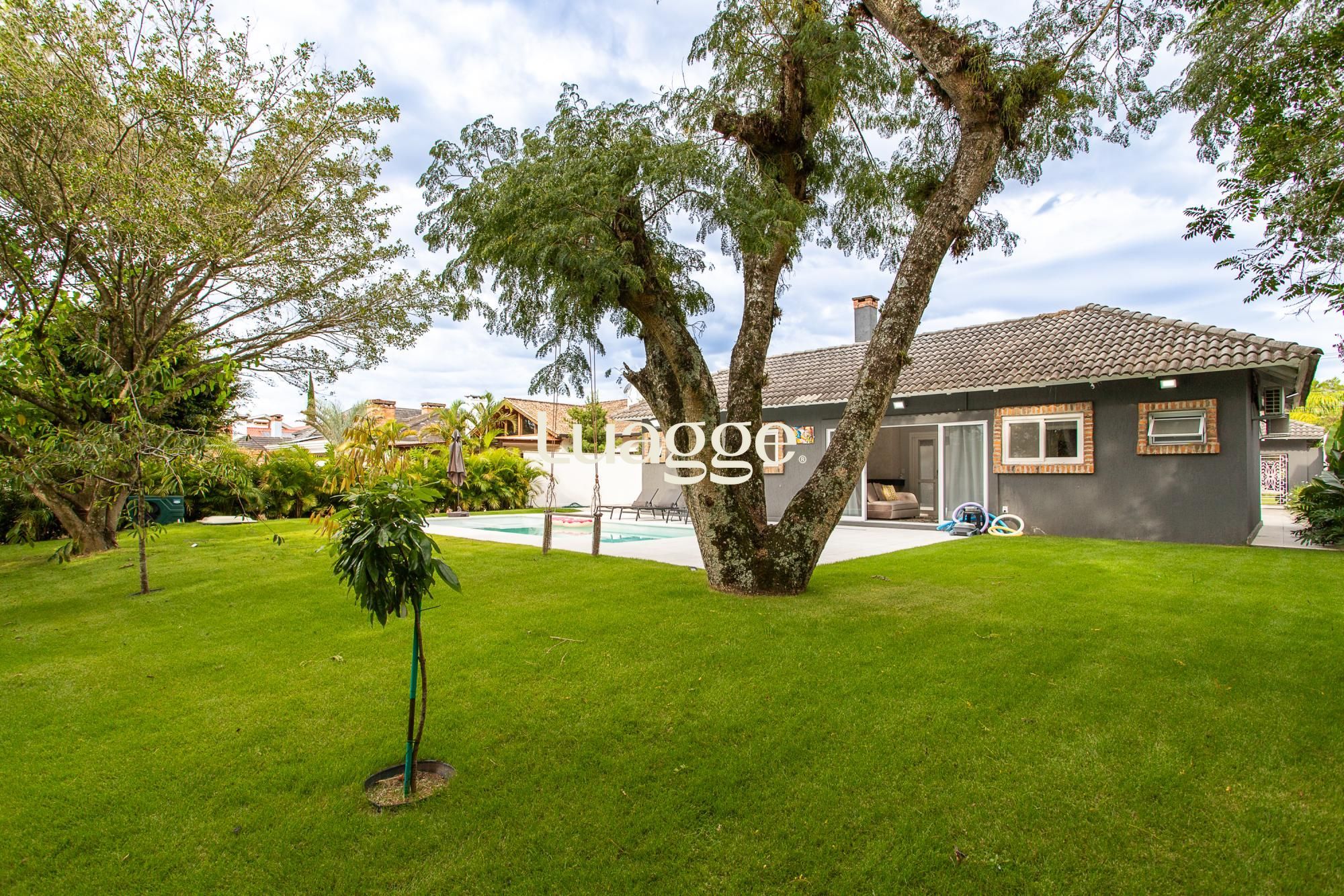 Venha conhecer esta linda casa térrea, com gabinete e 4 suites, uma delas com closet e lareira.