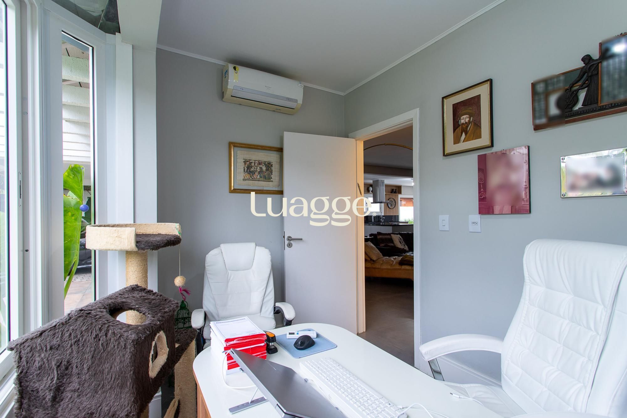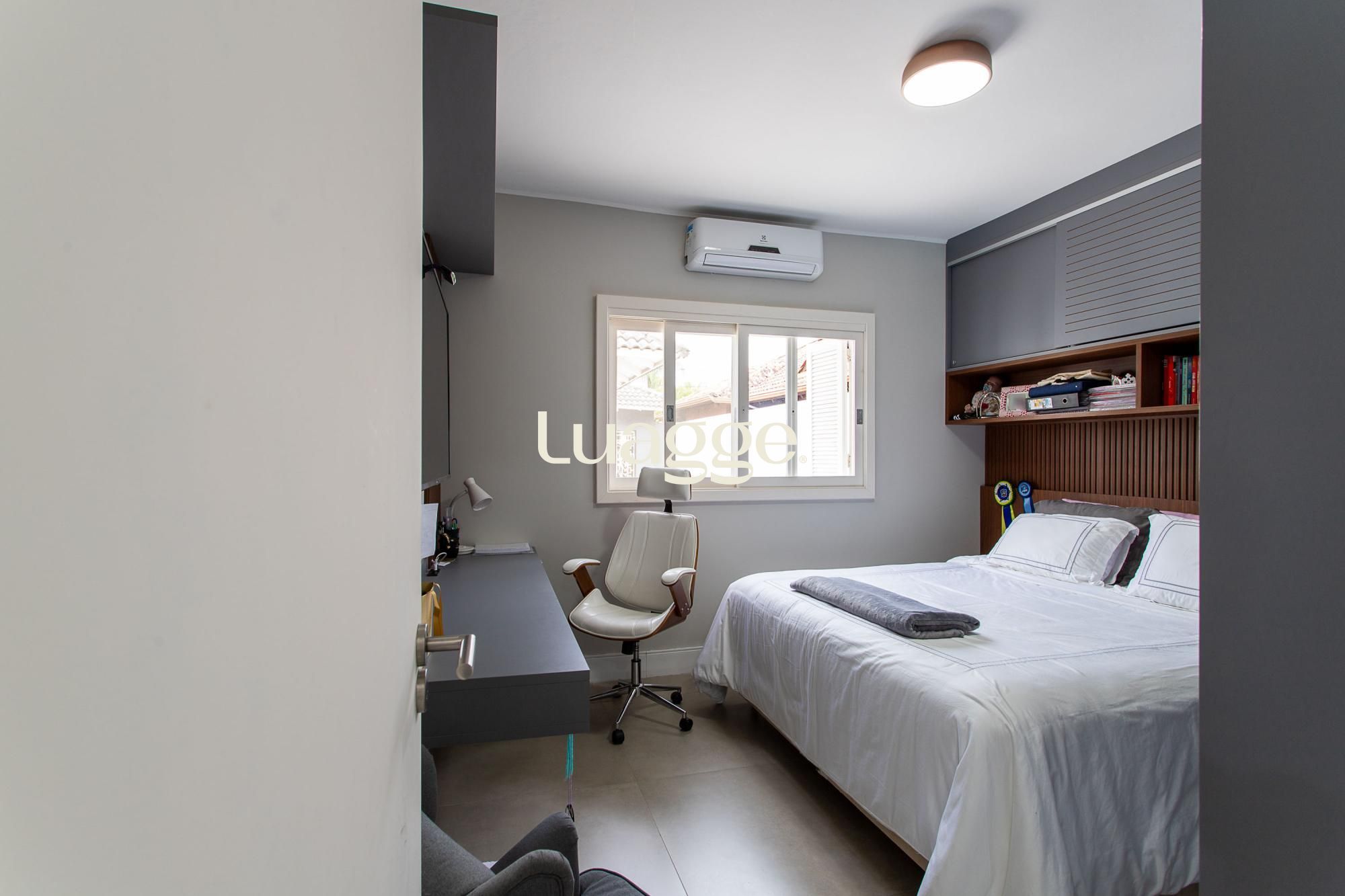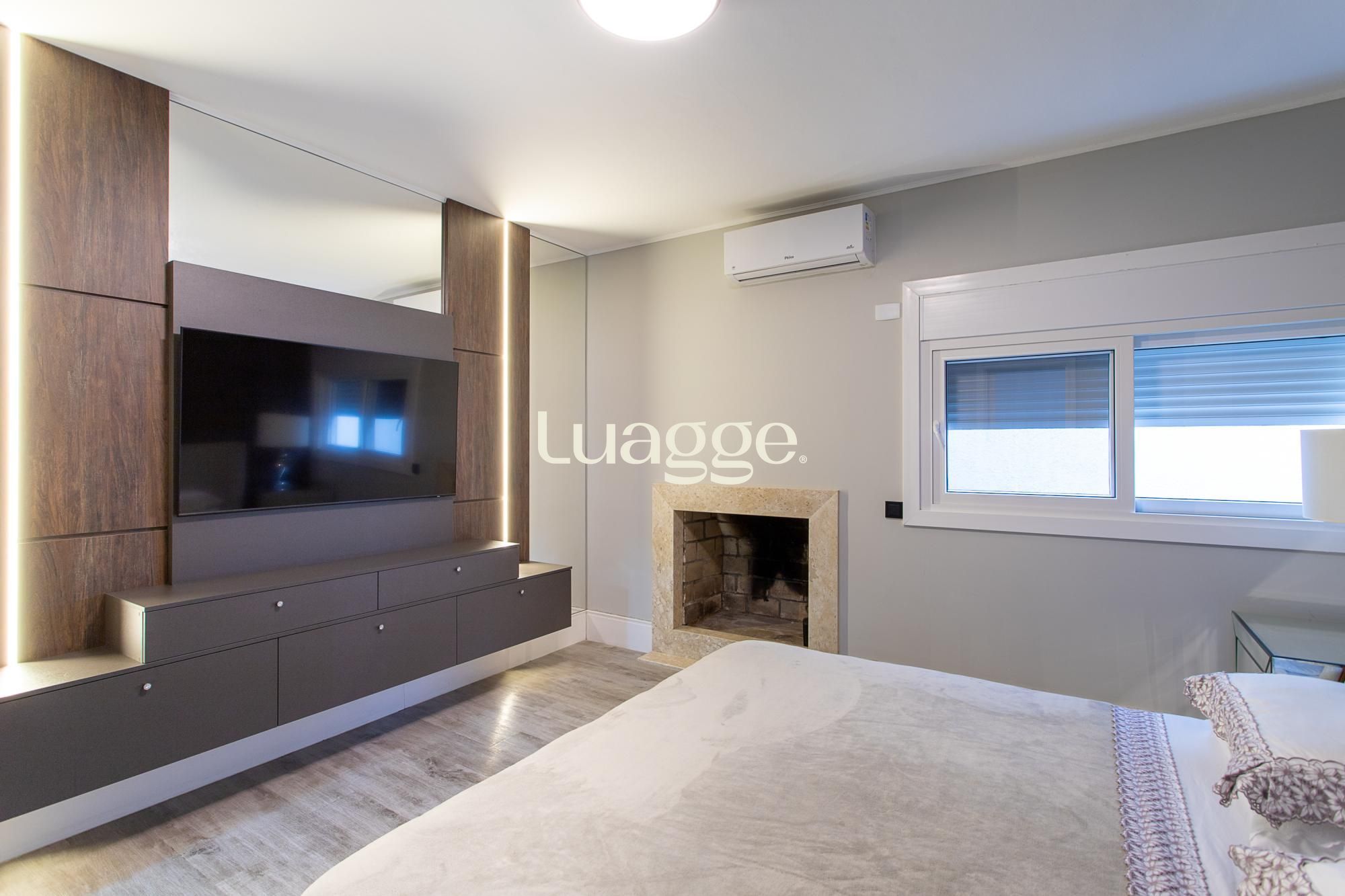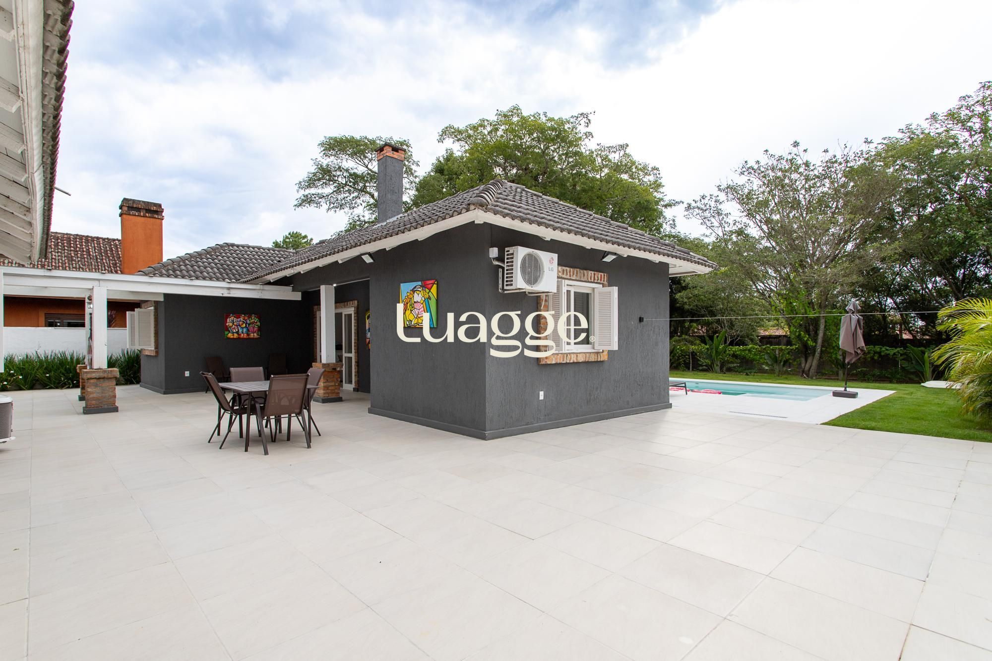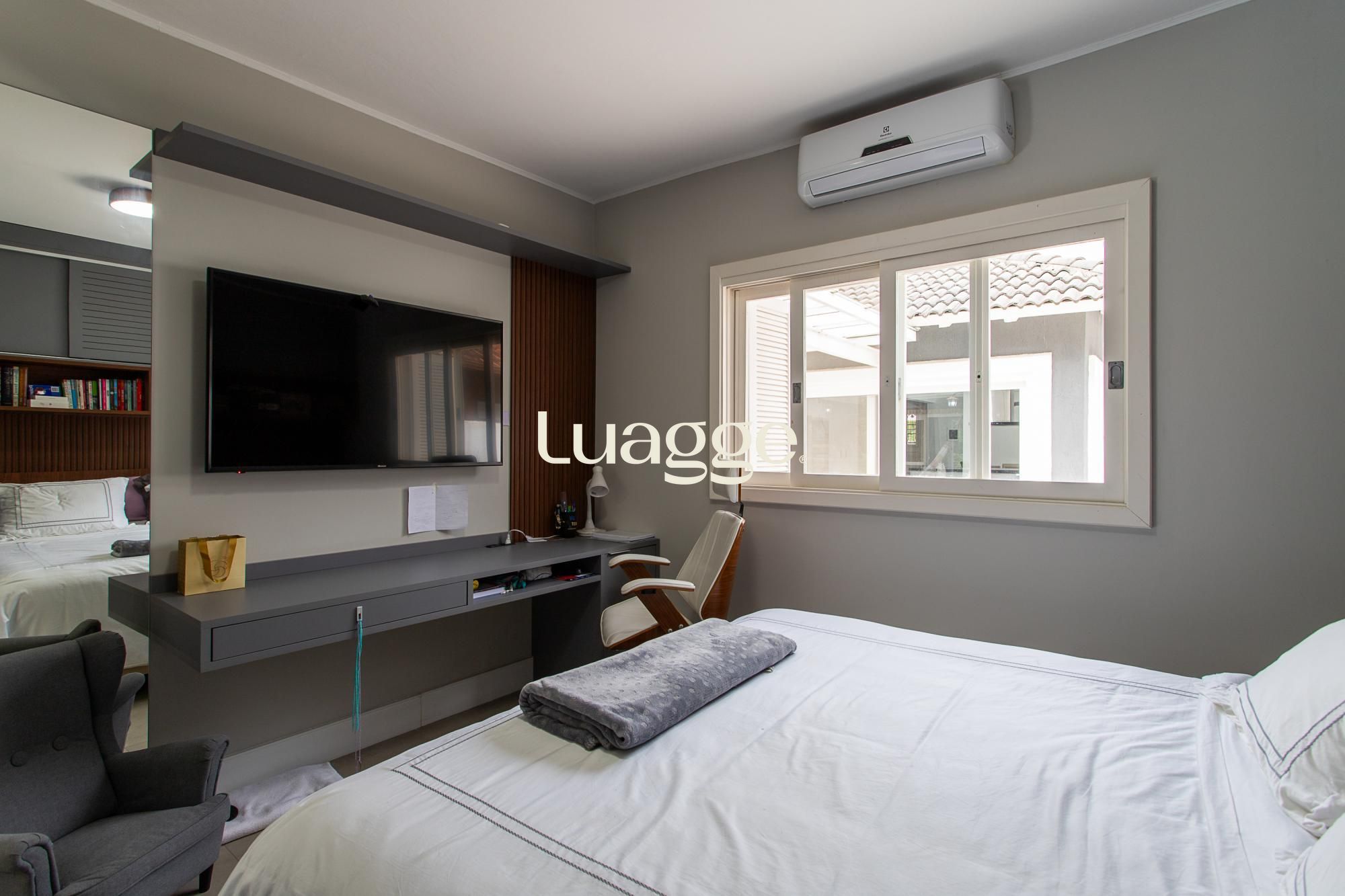 Venha conhecer esta linda casa térrea, com gabinete e 4 suites, uma delas com closet e lareira.