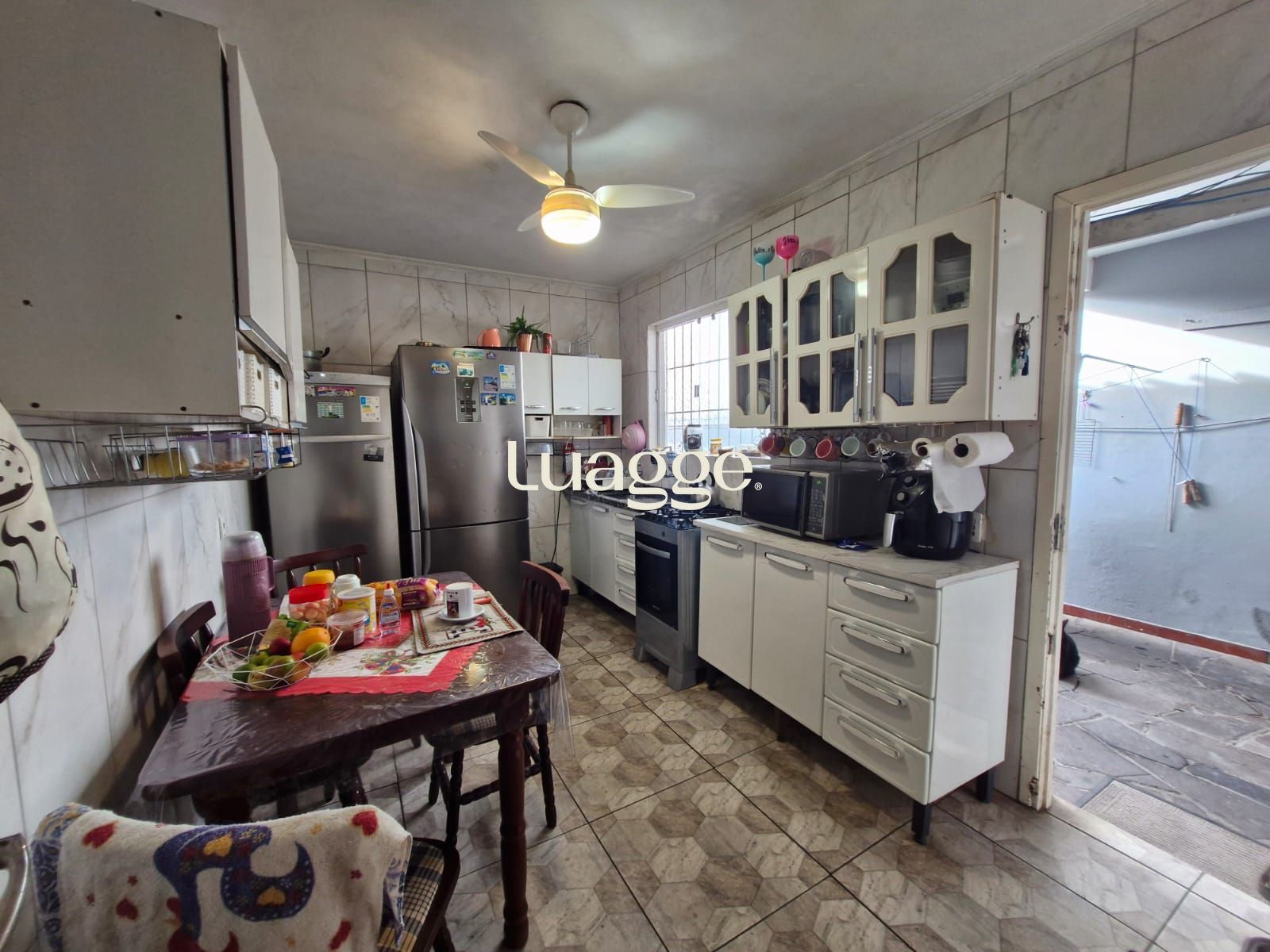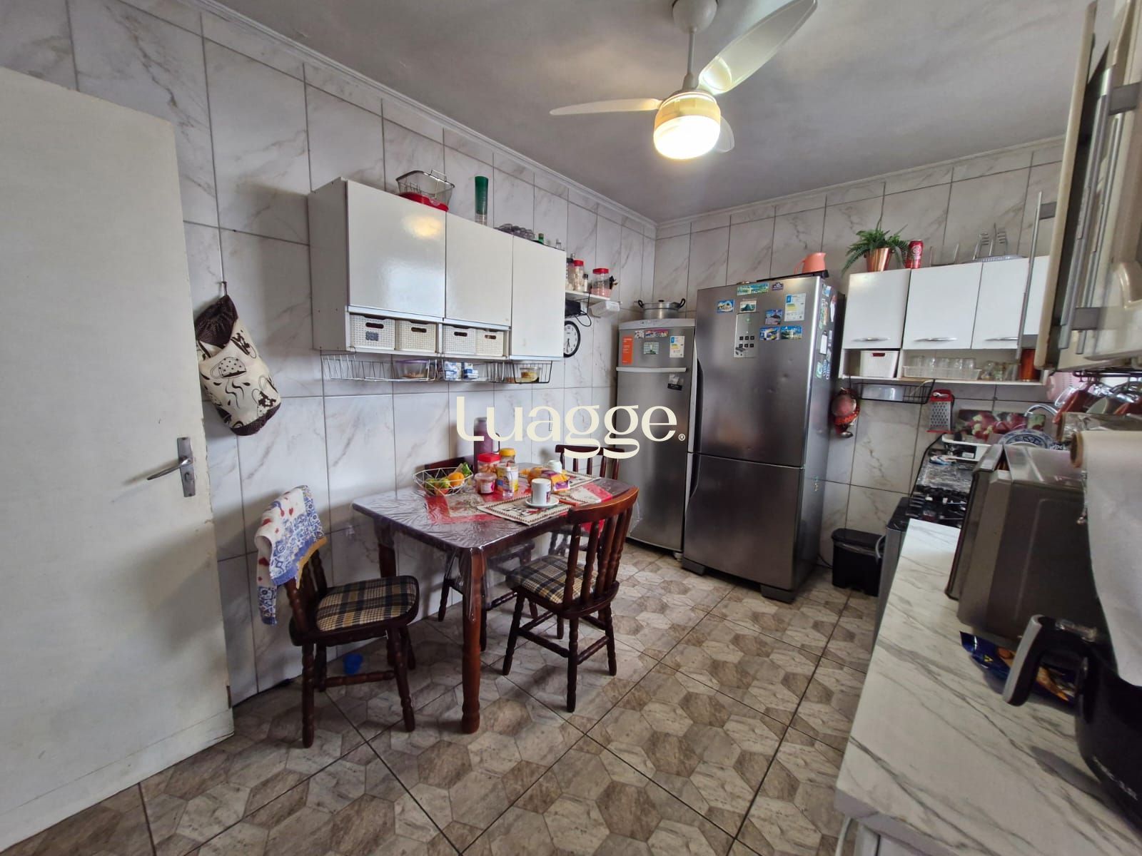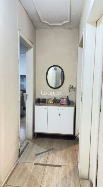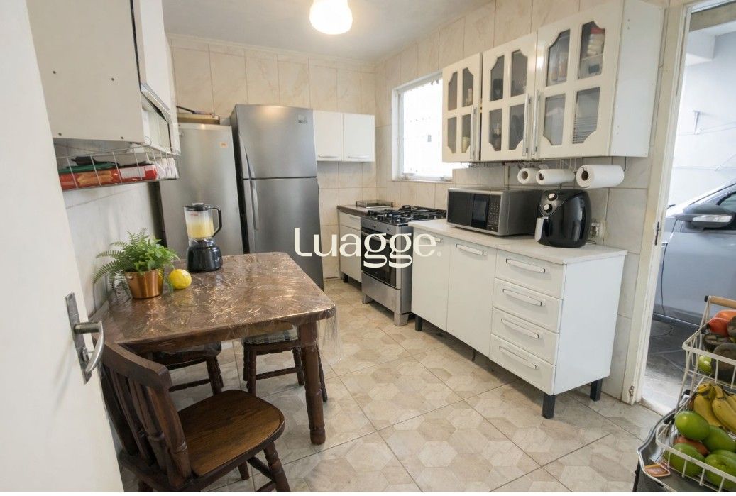 Casa com 3 dormitórios, sendo 1 suíte, e 2 banheiros. Living integrado à cozinha e 3 vagas de garagem. Nos fundos, possui uma edícula com 3 dormitórios, cozinha e 1 banheiro; na parte superior da edícula há um espaço que pode ser utilizado como salão de festas.