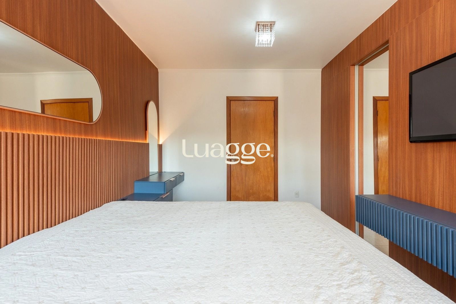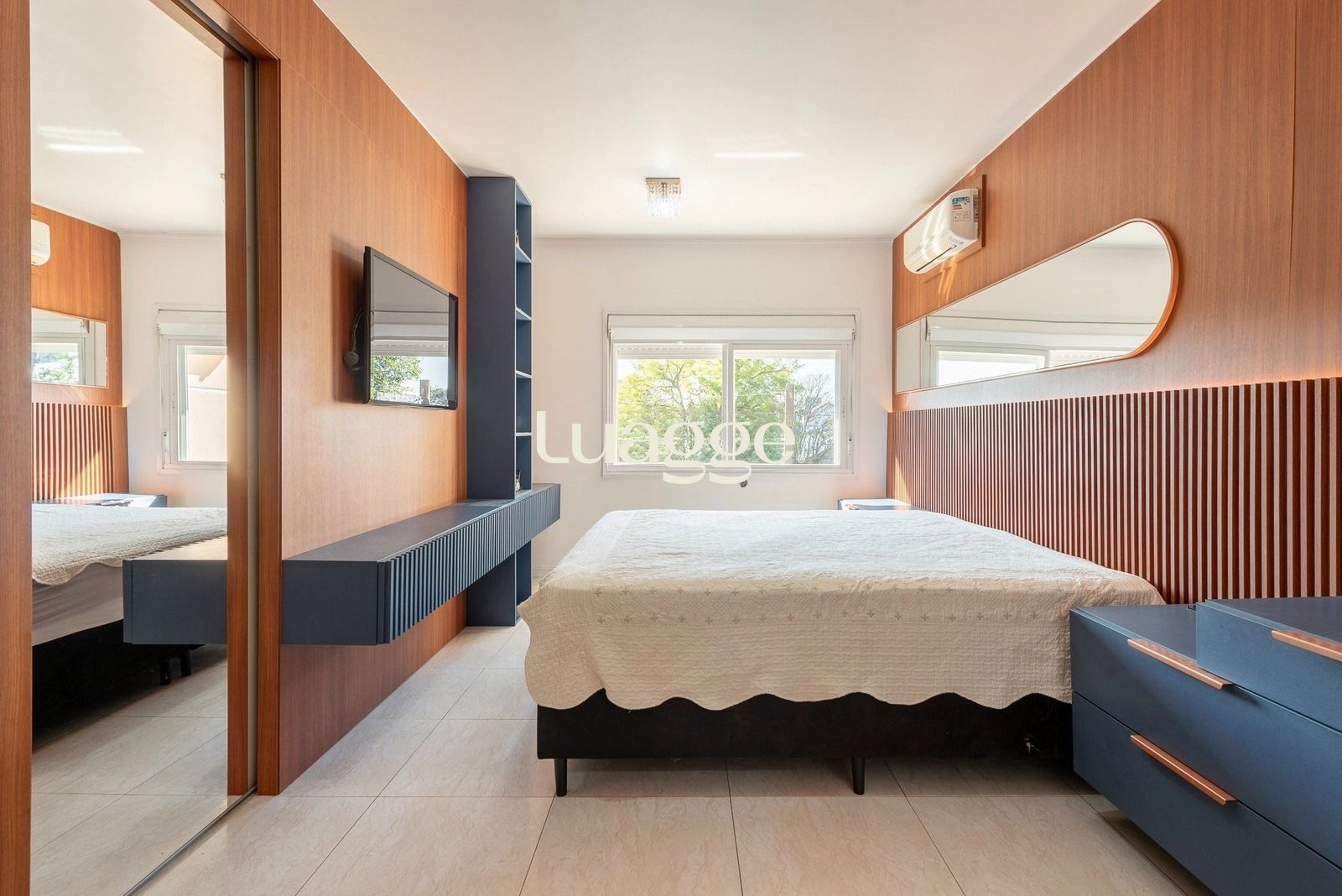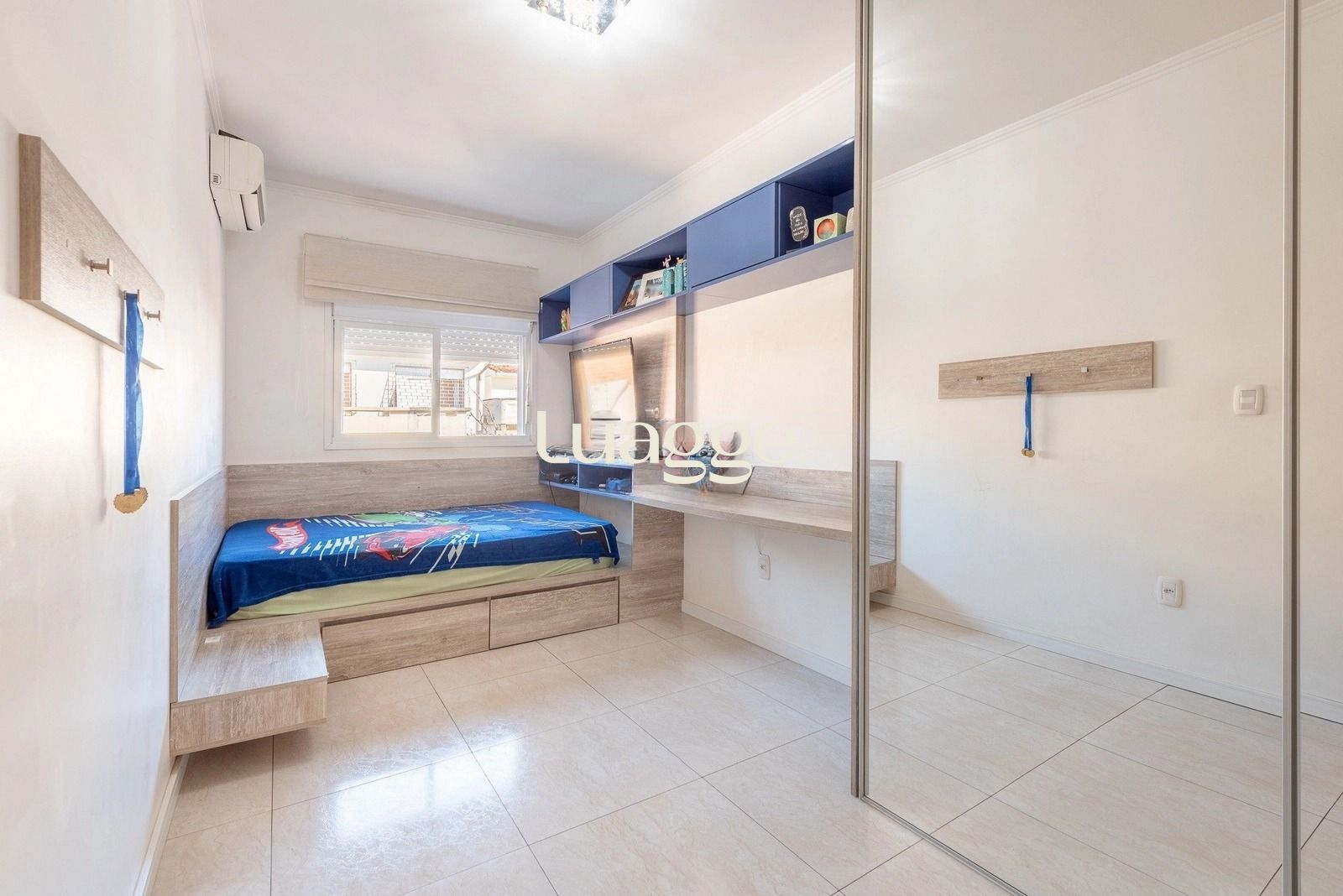 No pavimento superior, os três dormitórios oferecem excelente distribuição, com destaque para a suíte espaçosa com closet, garantindo privacidade e conforto. O imóvel permanece com móveis fixos de alta qualidade nos dormitórios, cozinha e banheiros, além de contar com três aparelhos de ar-condicionado tipo split, proporcionando bem-estar em todas as estações.