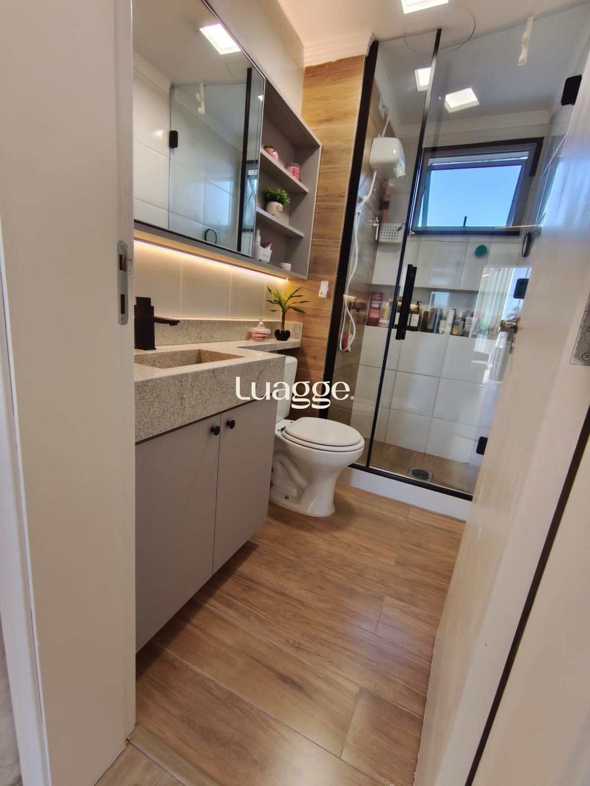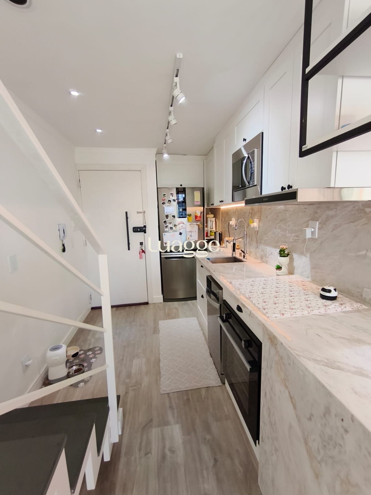 No pavimento superior, conta com terraço privativo com churrasqueira, proporcionando espaço externo para uso social. Imóvel decorado, com móveis planejados e três unidades de ar-condicionado instaladas. Apresenta bom padrão de acabamentos e conservação.